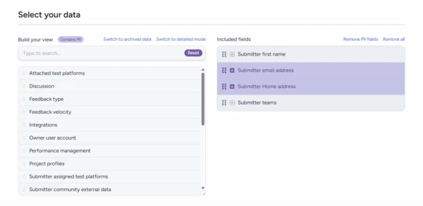 Need to dig up old fields or review retired feedback types? With our new archived data toggle, you can include previously hidden data in any filter or view, perfect for referencing legacy items without clutter.