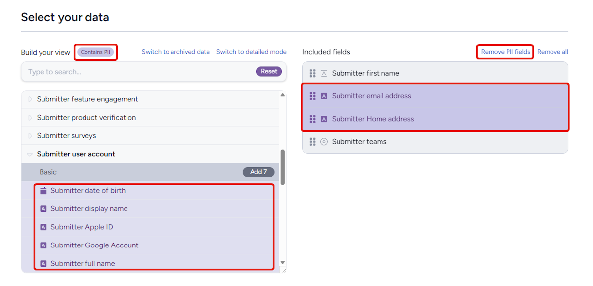 Personally Identifiable Information (PII) is now clearly flagged throughout the Data Engine, and we’ve added a one-click control to strip PII from any view. It’s never been easier to prep reports for external sharing or ensuring internal compliance.