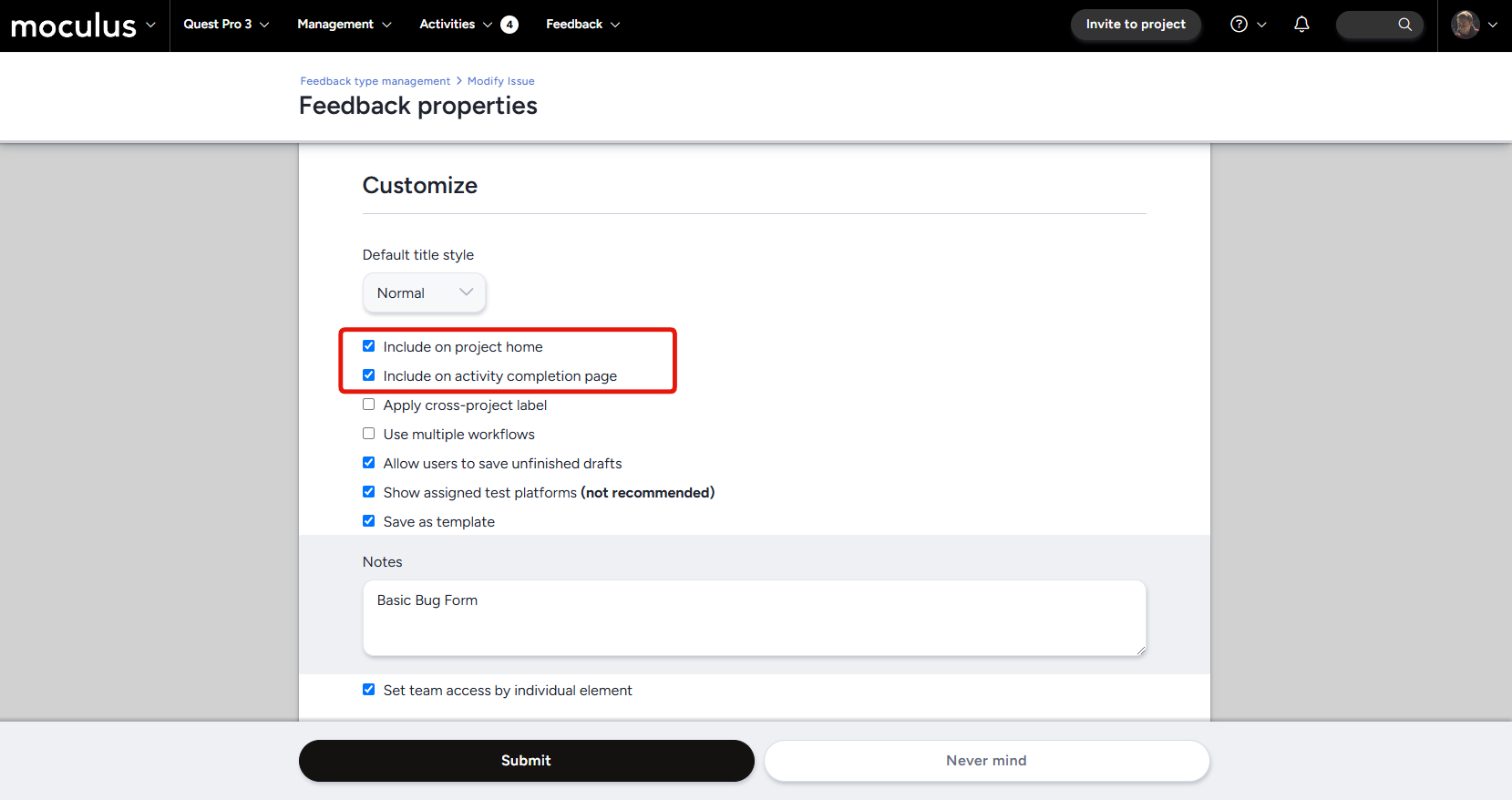 - Updated the “Submission label” within Feedback to now be required when configuring a Feedback Type