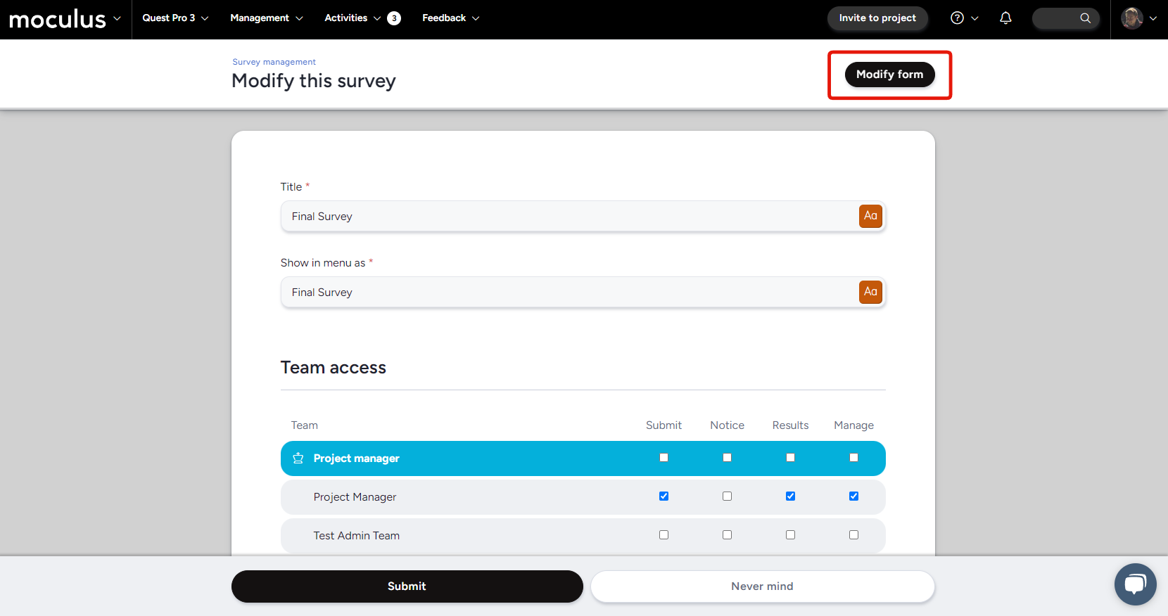 Added a button when modifying a survey’s properties to take you to modifying the form