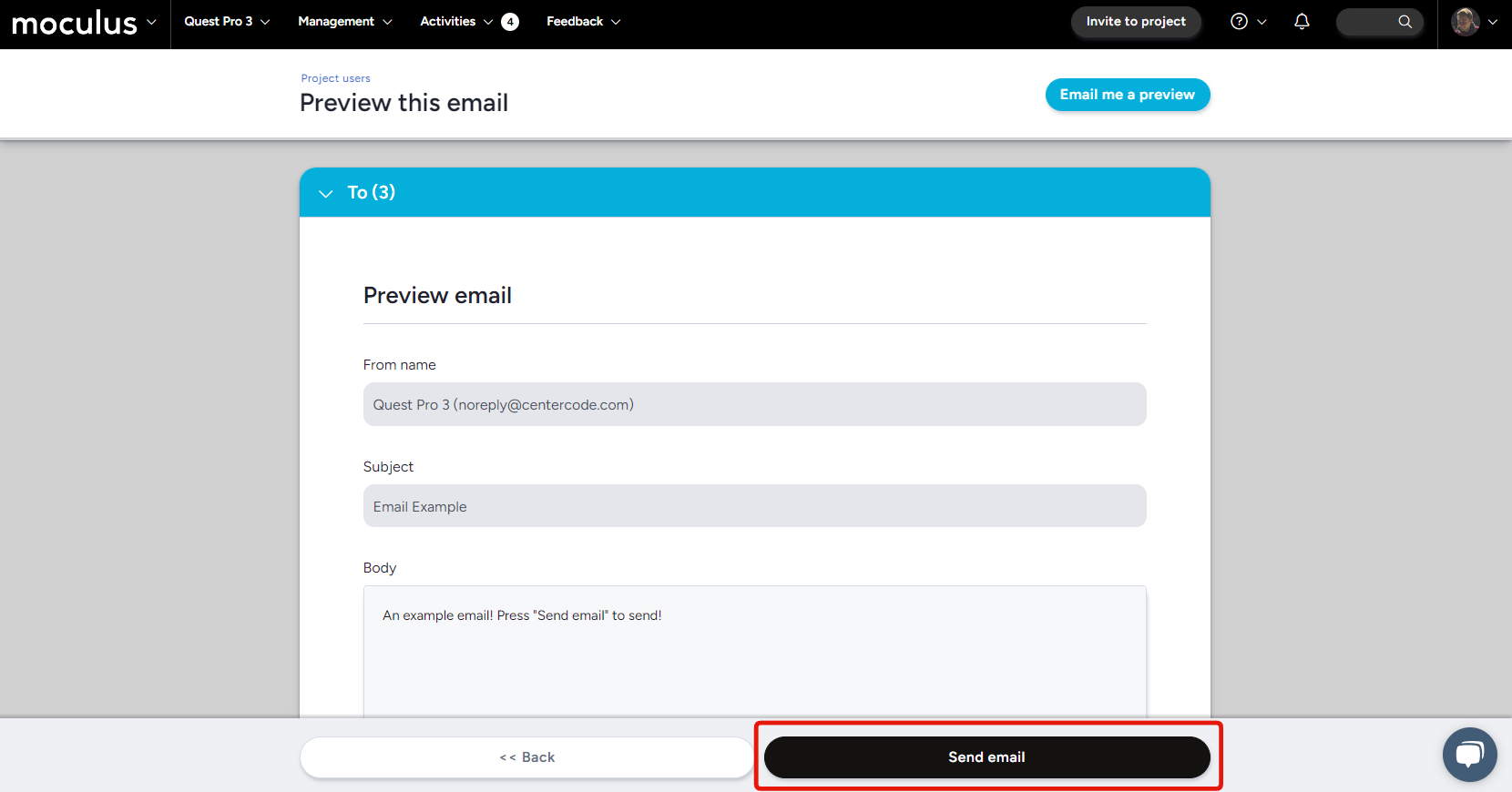 Changed the "Submit button" to “Send email” on the Preview this email page