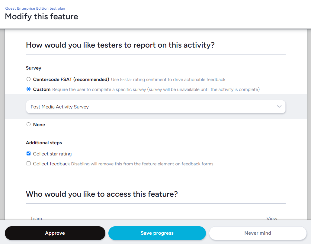 - Team access for User profiles and Surveys is now consistent