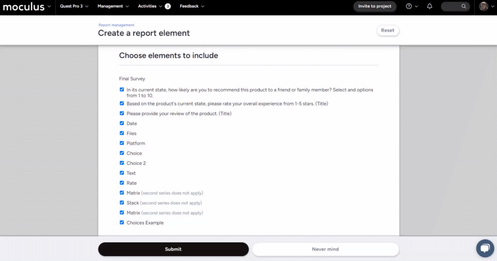 Improved element selection for Macro survey reports