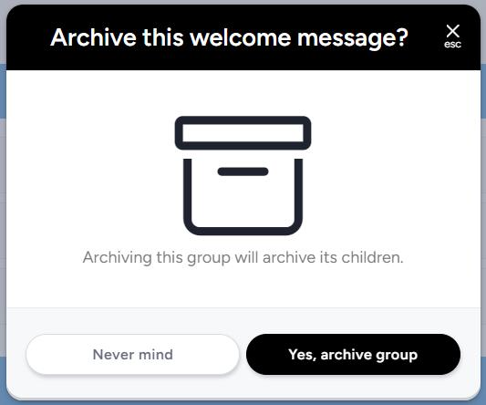Archiving a resource group (including content, releases, surveys, feedback types, and user profiles) will automatically archive all the resources within it.