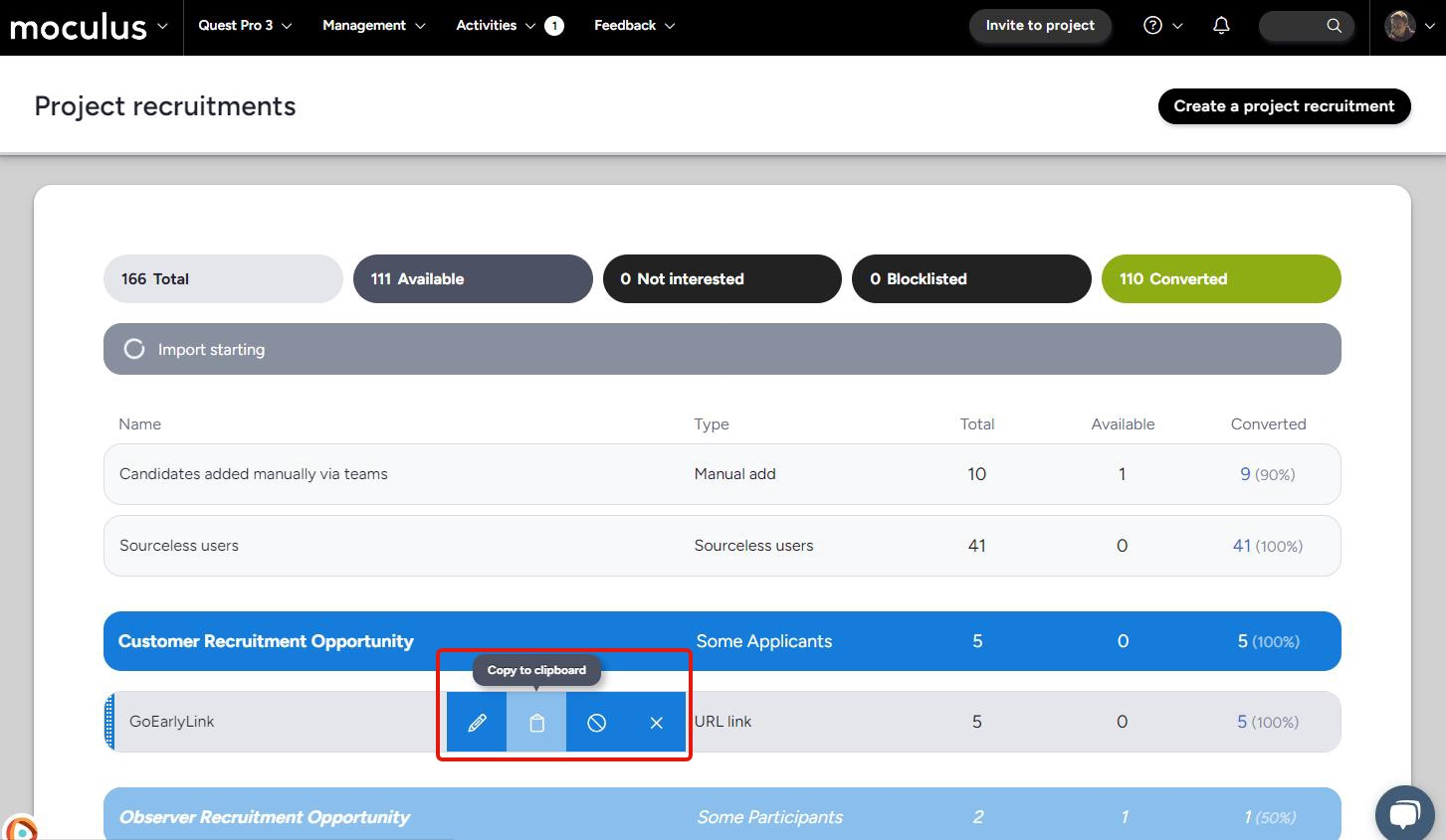 Get quick access to the link associated with a URL link invitation type by using the new button added to the Recruitments pages!