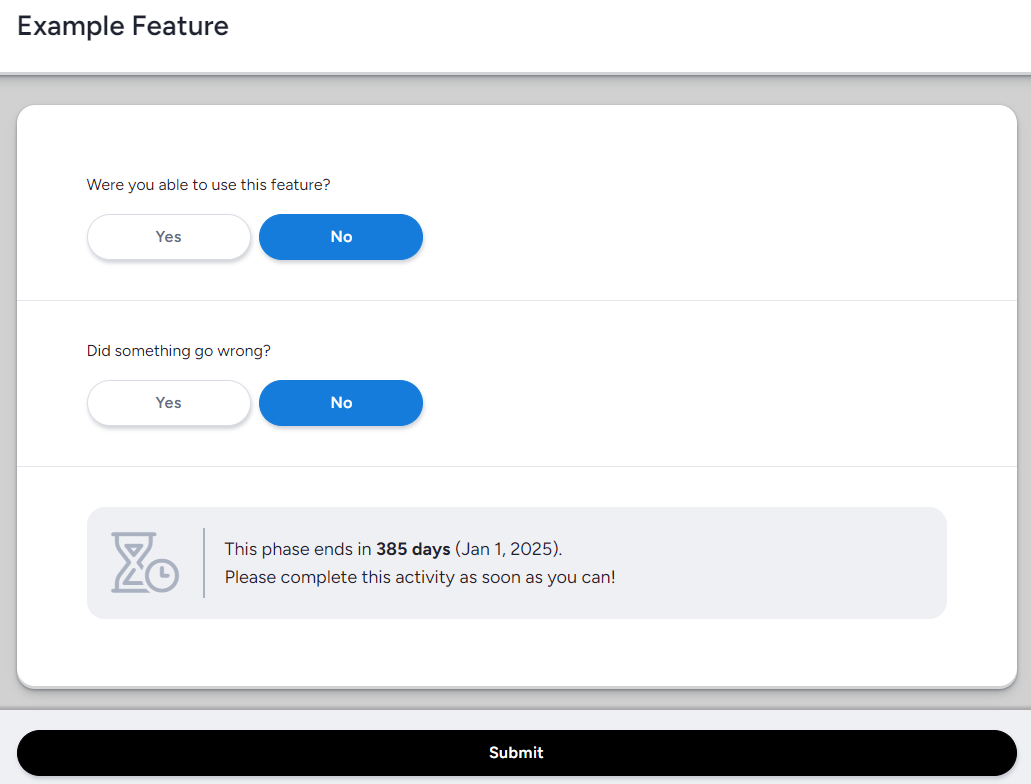 The “Activity incomplete” message was updated to include a new icon and dark visuals, making it clearer to testers that the activity is considered incomplete and they have a limited time to finish it.