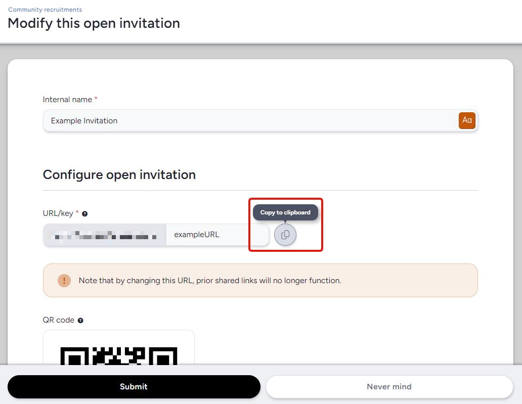 Easily grab a link you can paste elsewhere via this handy new button on the Modify this invitation type page!