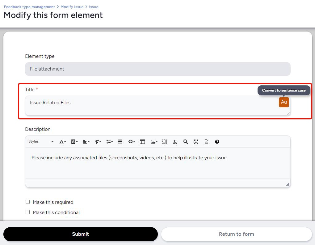 We’ve expanded our content title sentence casing tool to include form elements, making it easier for you to keep all your titles (resources, forms, etc.) cased the same way.