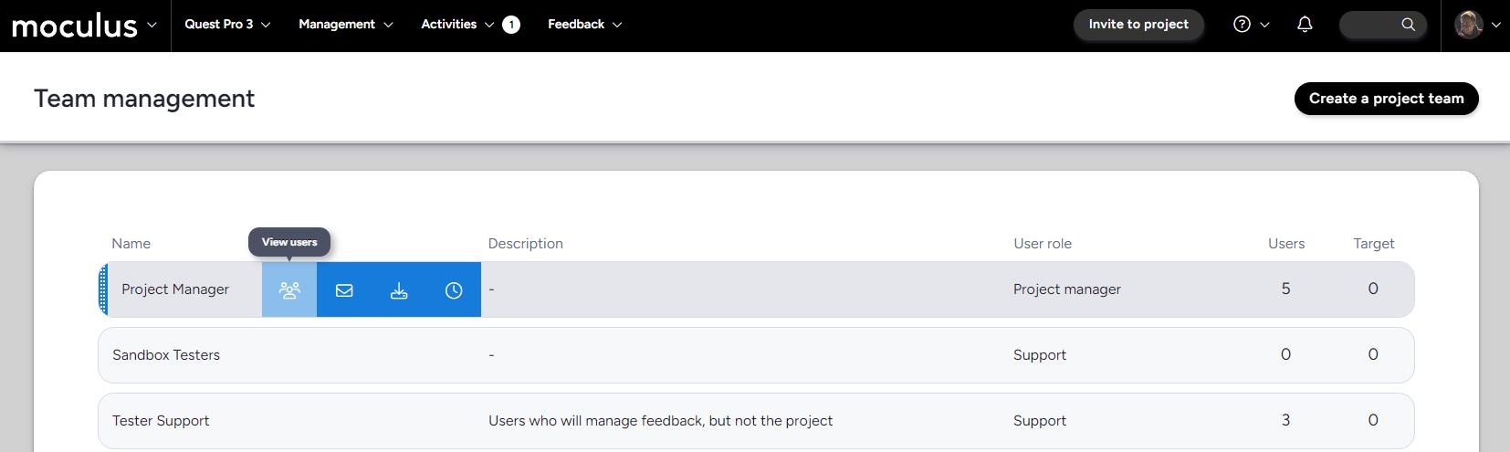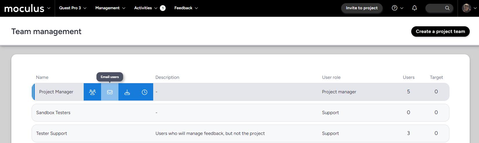 These handy buttons take you to a user list that's filtered to the relevant team and a shortcut for emailing users on that filtered list.