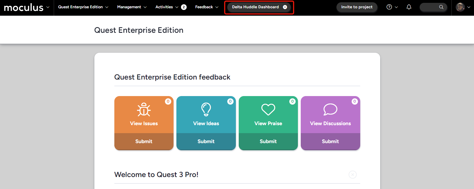 **Projects in an engagement phase will automatically populate a (dismissible) link to the Delta Huddle dashboard in the menu bar, giving you easy access to this powerful tool with a single click!