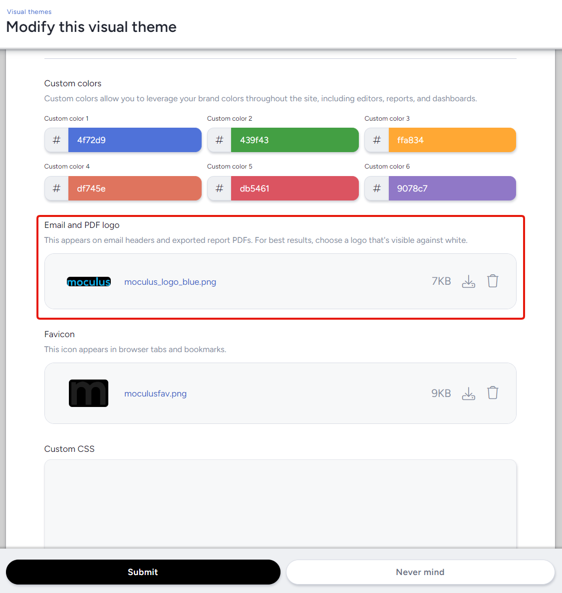 First on the list, we’ve expanded the functionality of the “Report logo” portion of your community visual theme, now renamed “Email and PDF logo”. As the name implies, any image uploaded here will now be included both on exported PDF report documents, as well as included in the header section of any system-generated emails. These additions give you a great new way to improve your community and project branding! Check out our updated template email examples below to see how this will look!