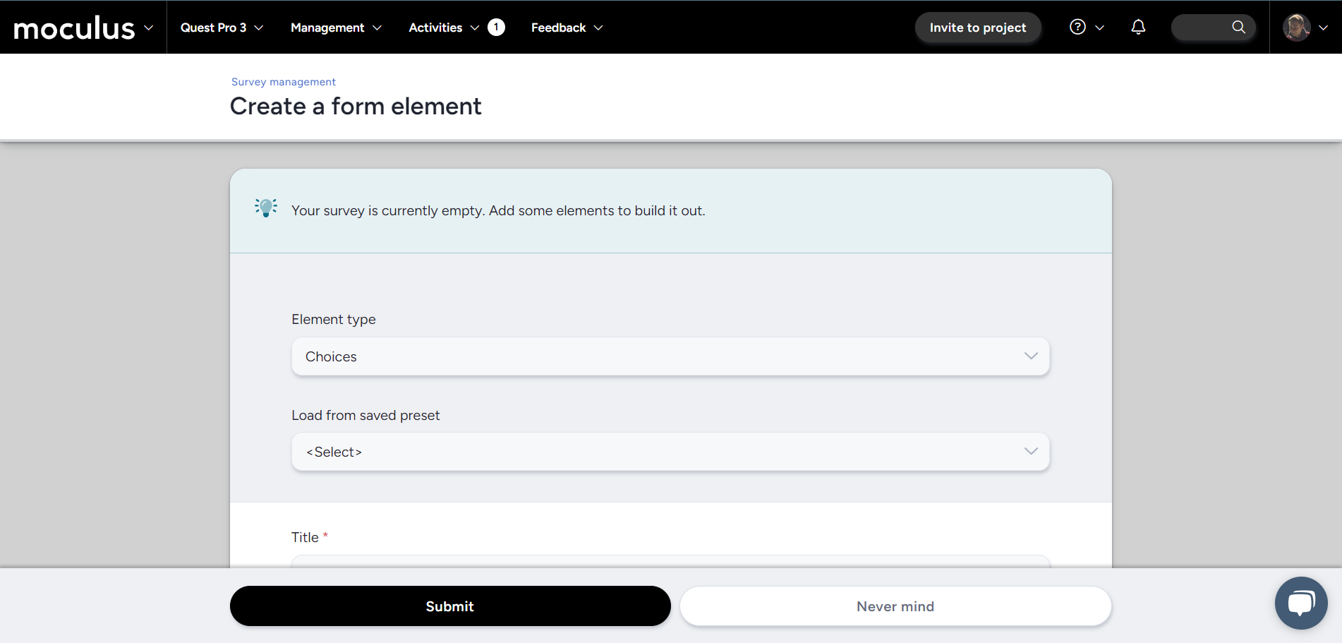 When customers create a new survey, it's obviously pretty common to add questions to it. We've shaved off the manual step of clicking the "Add a form element" button to make the survey creation process just a little bit smoother.