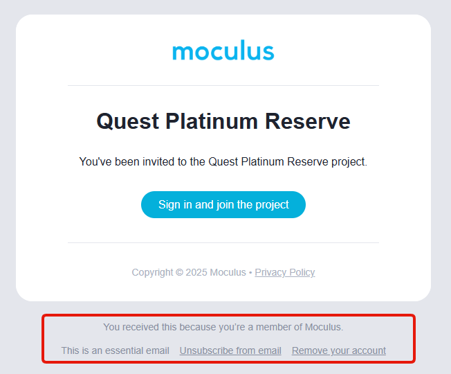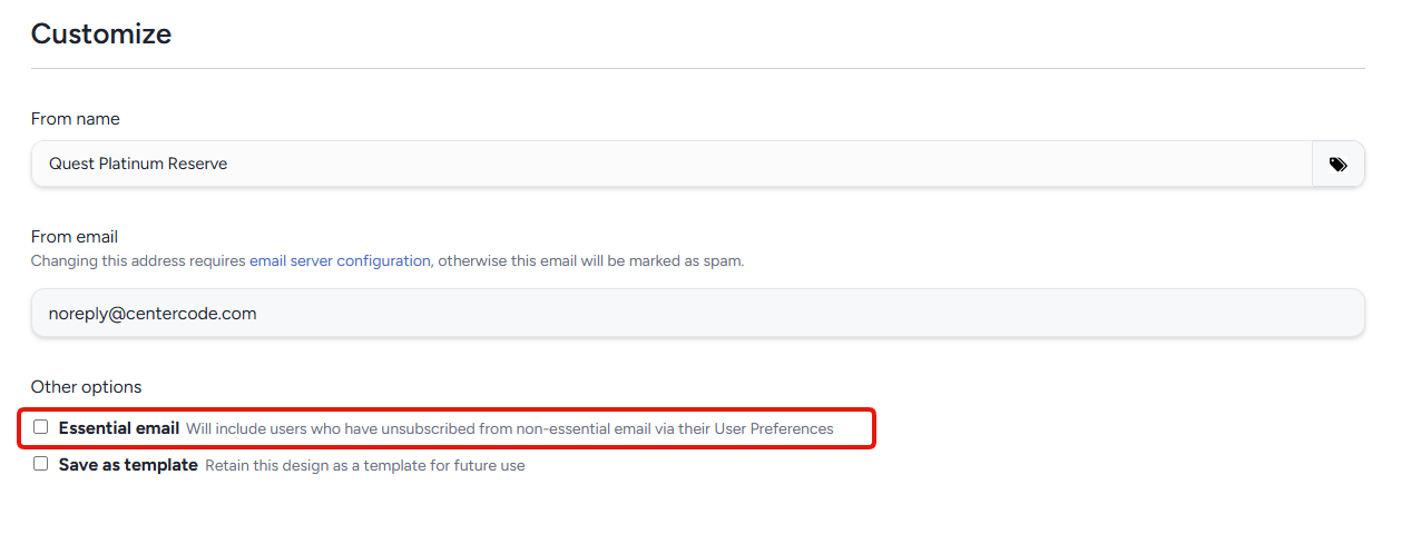 Every Centercode email now includes a footer that clearly shows why the user received it, whether it’s considered essential, and how to unsubscribe if it’s not.