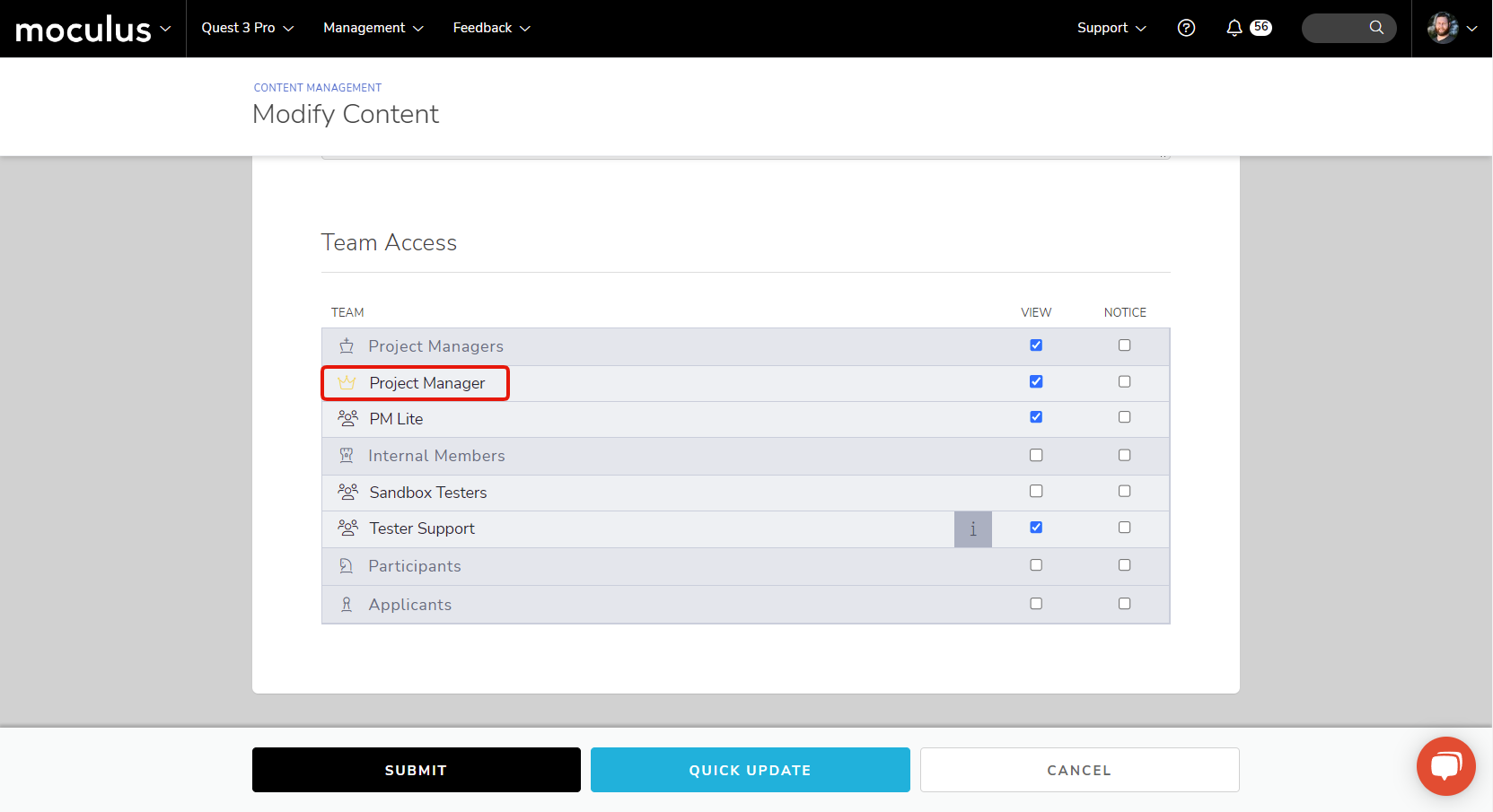 We're also updating the names of some of our existing user roles for clarity. The Internal Members role is now known as "Project Creators" at the community level and "Support" at the project level.
