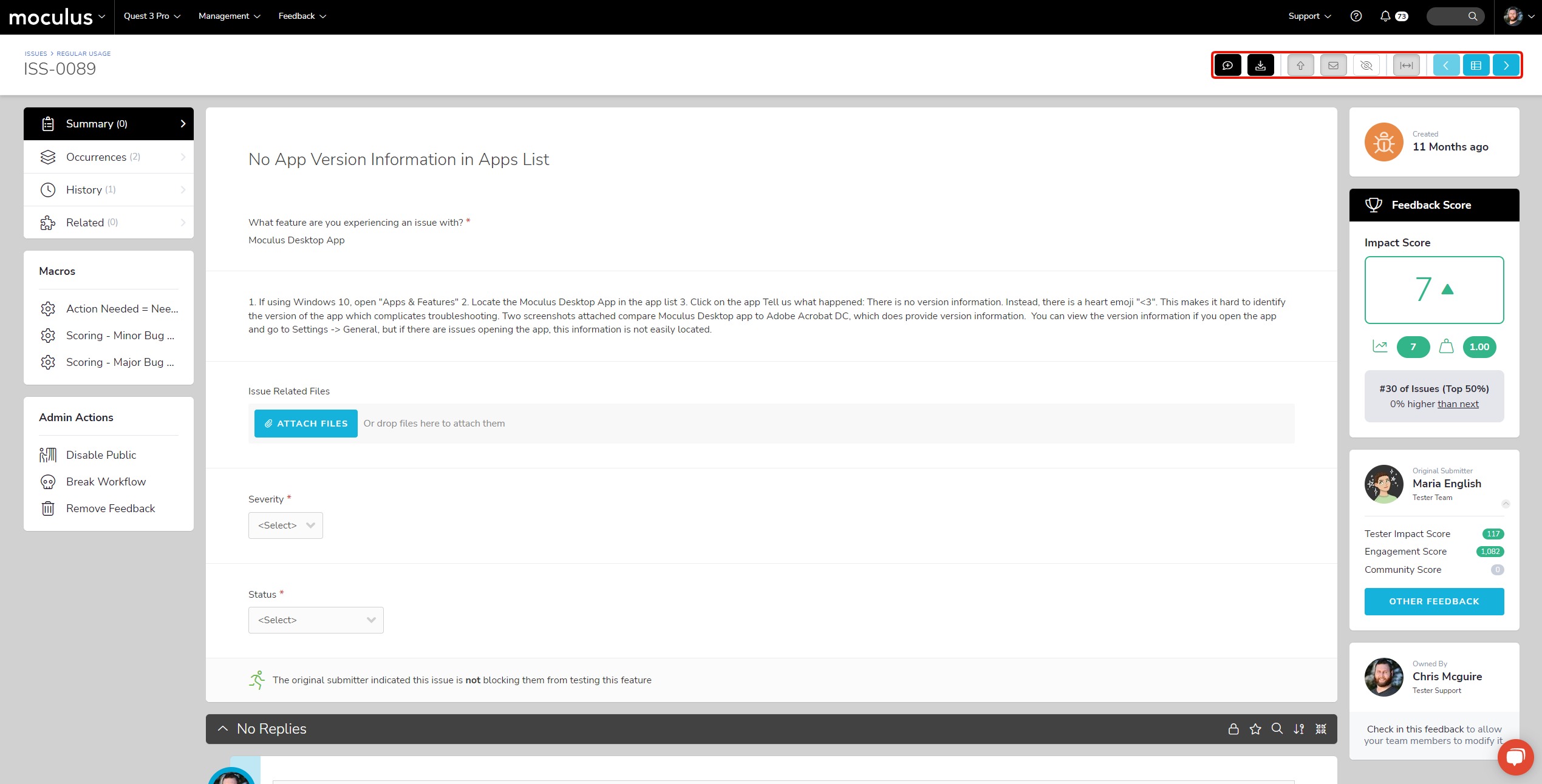 Lastly, find your quick actions in the updated Title Bar including Add Comment, Archive, Vote, Follow, and more. The bar scrolls with you, ensuring that checking out or commenting on Feedback is always at your fingertips!
