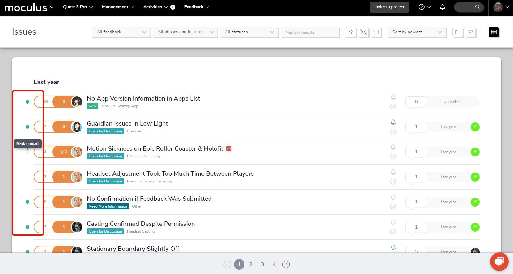 And finally, we’ve got another addition to the ongoing list of feedback simple list tweaks and improvements. This time, we’ve added a bit of interactive functionality to the “New” indicator icon, allowing you to dismiss it without manually viewing the associated ticket. This change additionally allows you to re-mark a ticket as new if you’d like to remind yourself to check in on it later. This simple but impactful change gives you a lot more control over which pieces of feedback you’d like to keep a closer eye on, all without navigating out of the feedback simple list!