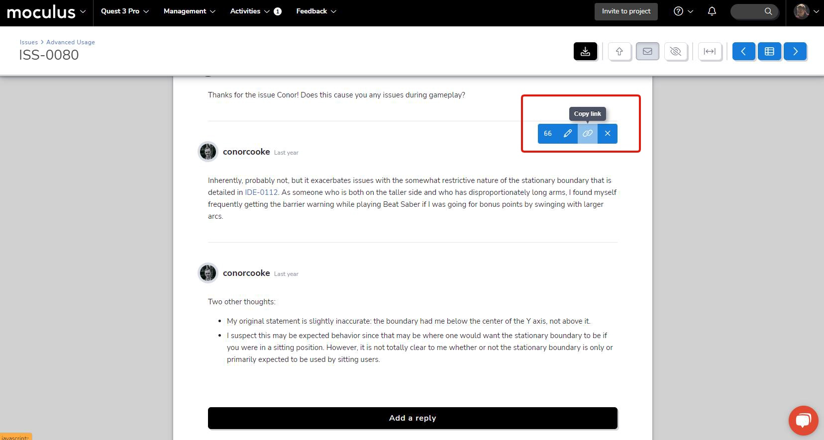 Next on the list, we’ve got a new addition to our feedback reply toolbar that makes locating and sharing user replies easier than ever before! The new "Copy link" button allows you to create a link directly to a piece of feedback that will highlight and automatically scroll to the linked reply (as well as load the appropriate page of replies, if applicable). Whether you’re directing your triage teams’ attention to a specific reply, or requesting an update from a user regarding a previous reply, this new button will make pointing users right where they need to go a snap!