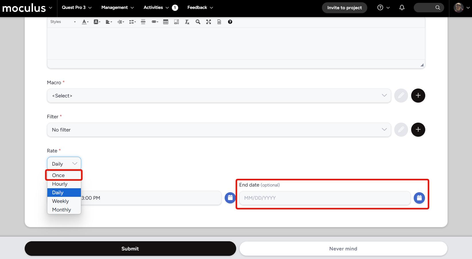 We've got some brand-new (and user requested!) functionality added to our macro and distribution scheduling options! Sometimes you might not want a scheduled macro or report distribution to run forever, or you might want to schedule a single distribution or event in the future, so we've added the "Once" and "Ending on" options to our scheduling system. Know when your project is set to end, and won't need reports distributed after that date? Set it and forget it! Got an email you want to go out on a specific day in the future? Create a scheduled macro set to "once" and don't worry about marking your calendar to send it later! Setting your test up for success from the get-go is now easier than ever before!