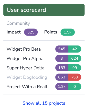 For dessert, we'd like to highlight the brand new User scorecard, which you'll see in the right-hand menu on both the community and project scopes. The User scorecard displays the Tester Impact™ score—a value automatically calculated by Centercode based on a tester’s level of engagement with impactful feedback (via submitting, voting, and replying to feedback within projects). It also shows user points, which you and other admins can grant via custom events (formerly known as rankings). Showcasing both a community score and the five most recently accessed projects (which can be expanded to show all), the User scorecard makes it easier than ever to identify and fully utilize your most dedicated testers!