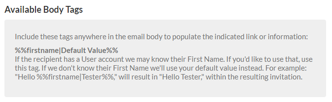 Using this new tag, %%firstname|Default Value%%, you can connect a little more closely to your users in your project invites.