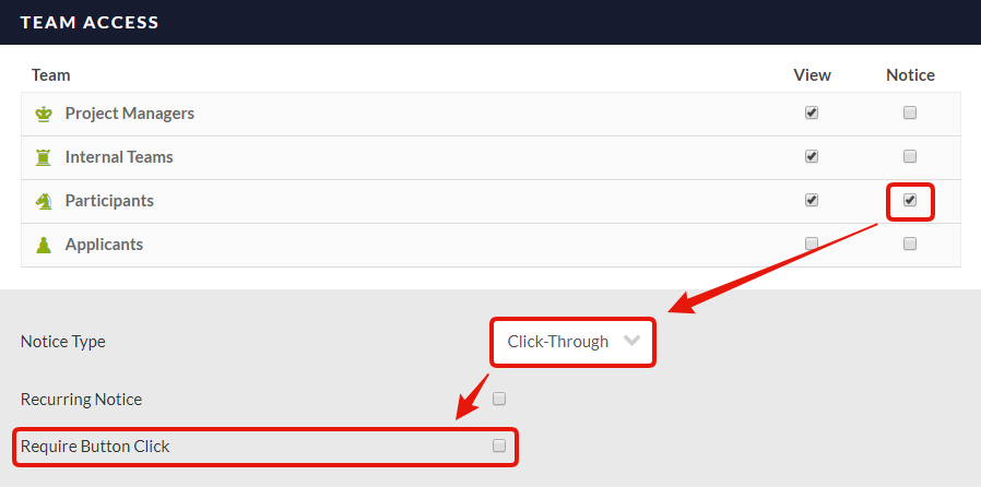 With the default settings (click not required), Click-Through Notices are considered “completed” as they’re viewed, meaning they can be subsequently bypassed by additional clicks. Now your Notices can look like this, and function exactly like you’d hope they would: