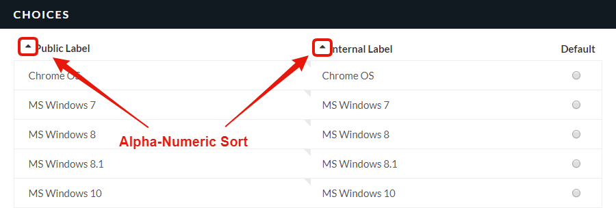 It’s just like it sounds - lists of items in any Choices element can easily be sorted Alpha-numerically or set to randomize. The Choices elements’ interface has two new components which blend in seamlessly - check out the screenshots below.